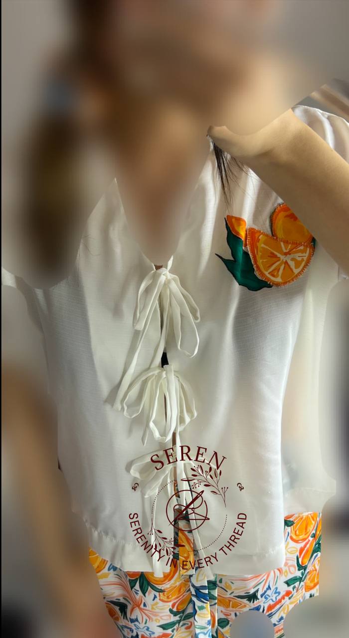 طراحی منحصر به فرد تیشرت (مدل اور): این ست با رنگ نارنجی طرحدار و شاداب، انرژی مثبت را به فضای استراحت شما میآورد. تیشرت این ست دارای مدل اور (Our) است؛ به این معنی که جلوی تیشرت باز بوده و با یک بند به شکل گره بسته میشود. این طراحی نه تنها جلوهای مدرن و متفاوت ایجاد میکند، بلکه امکان تنظیم دلخواه باز یا بسته بودن تیشرت را به شما میدهد.