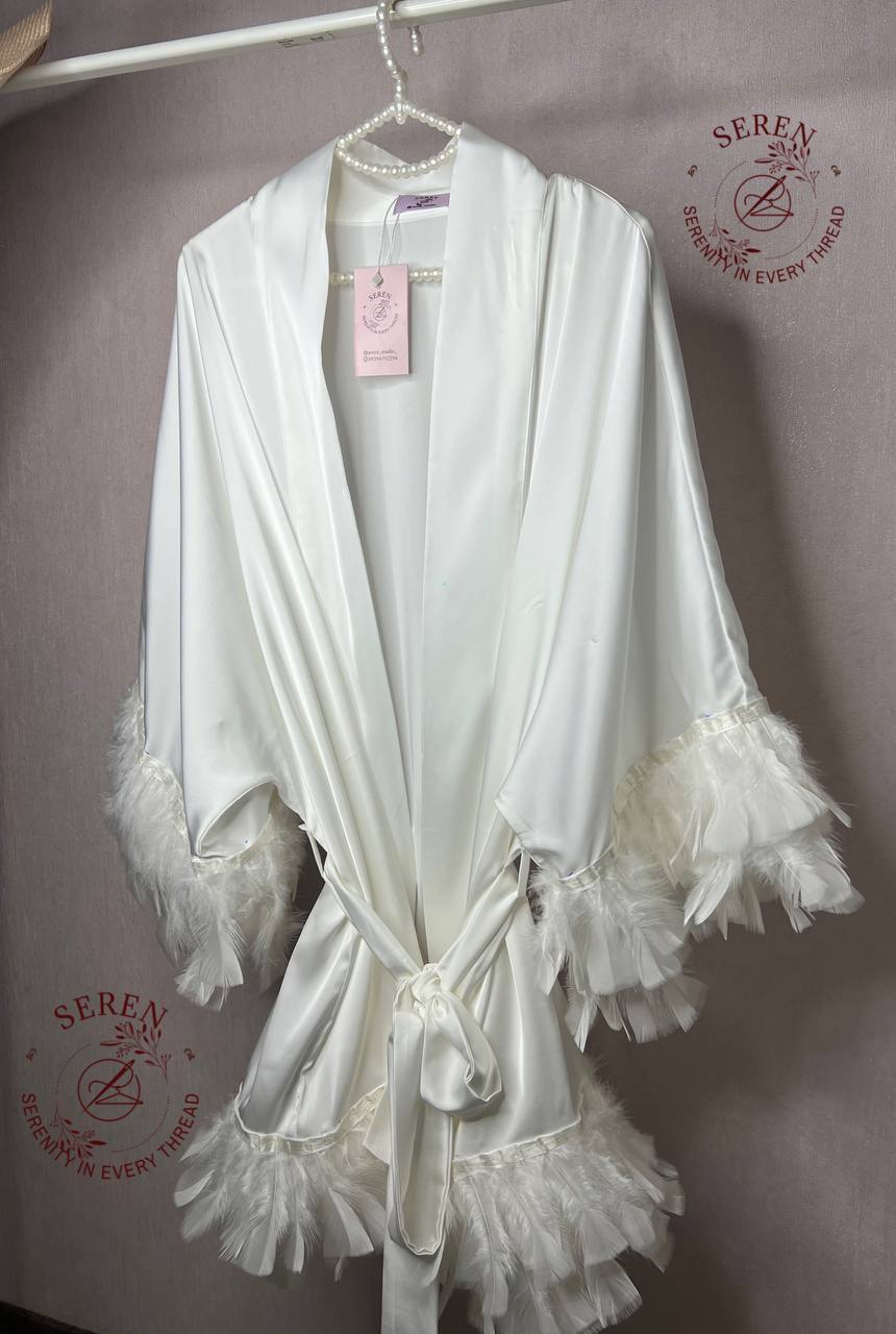 🕊️ روبدوشامبر لوکس سپیدپر – درخشش ساتن و لطافت پر